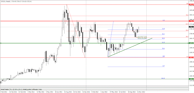 En mi opinión, no me resulta interesante entrar en comercio del Oro, mientras no rompa dicho canal, dado la amplitud del mismo o por una ecuación de ratio riesgo beneficio, vender en resistencia y comprar en soporte.